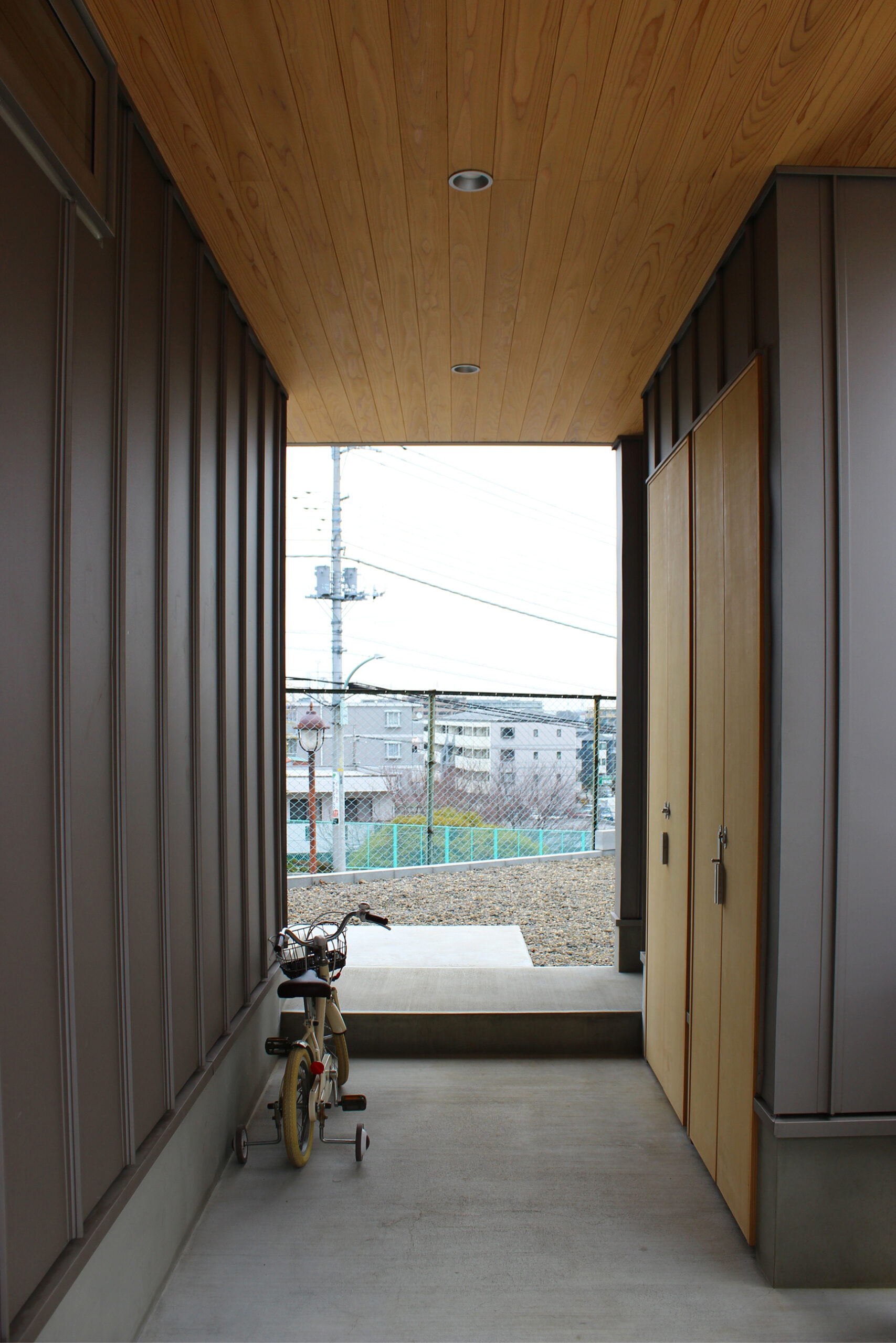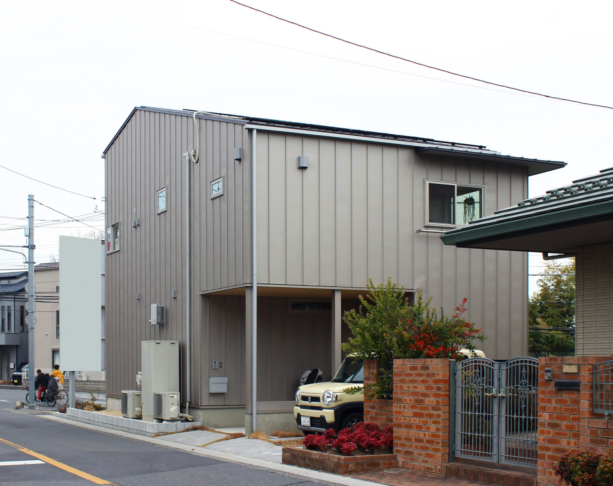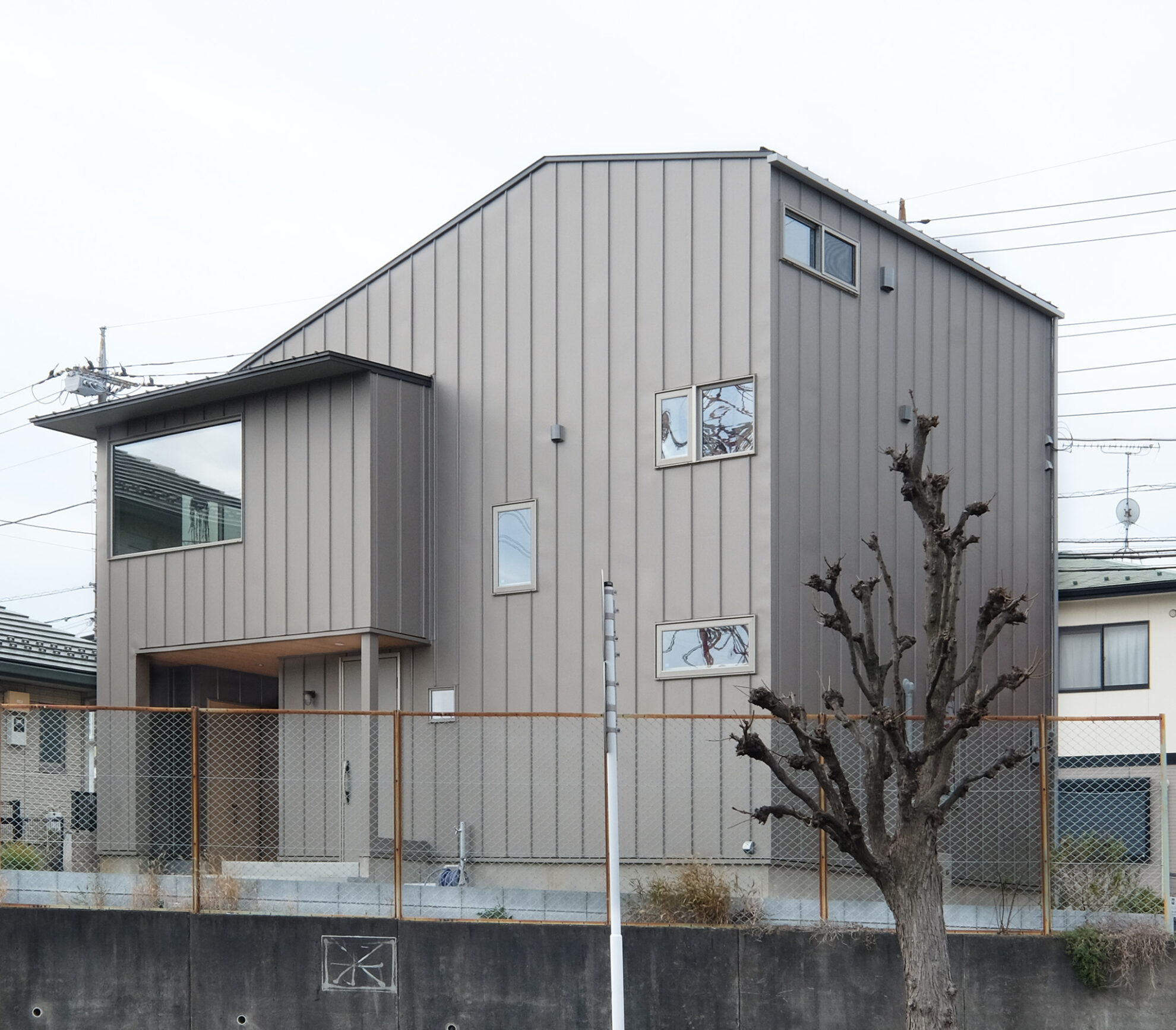 道路に囲まれているため、人目が気にならないよう、リビングやキッチンダイニングなどの家族がよく集まる部屋を2階にまとめ、1階の窓は最低限に計画しました。