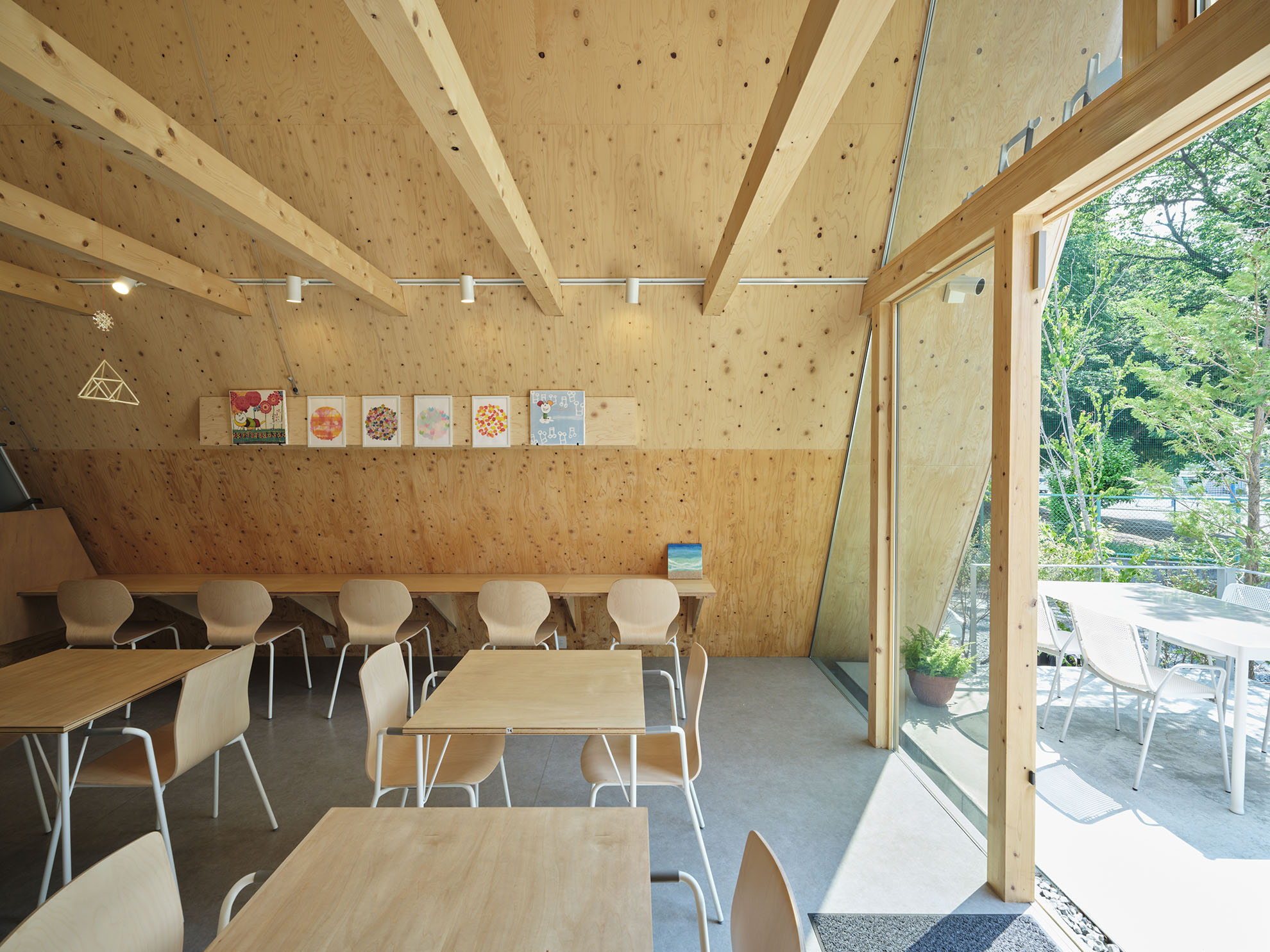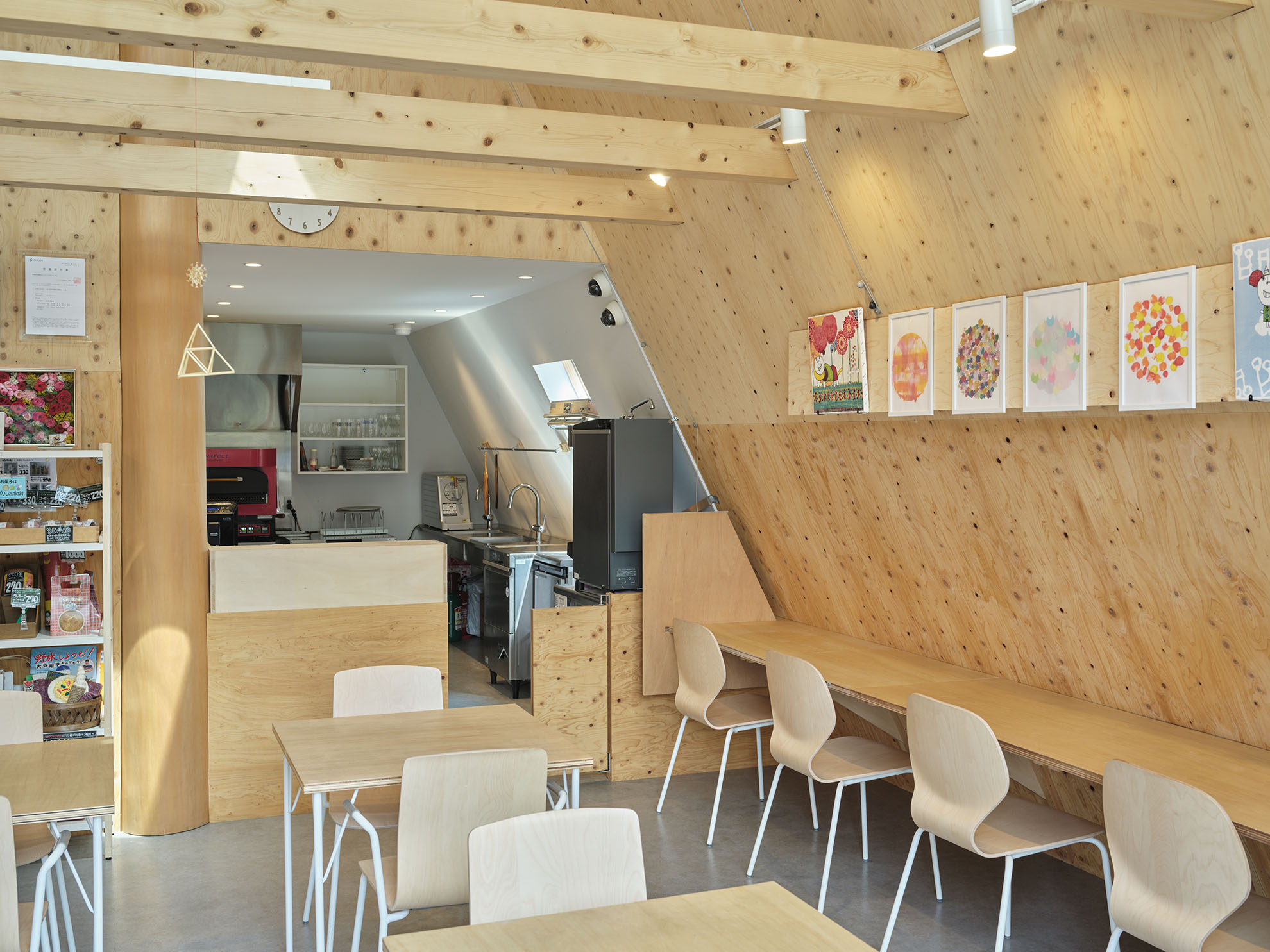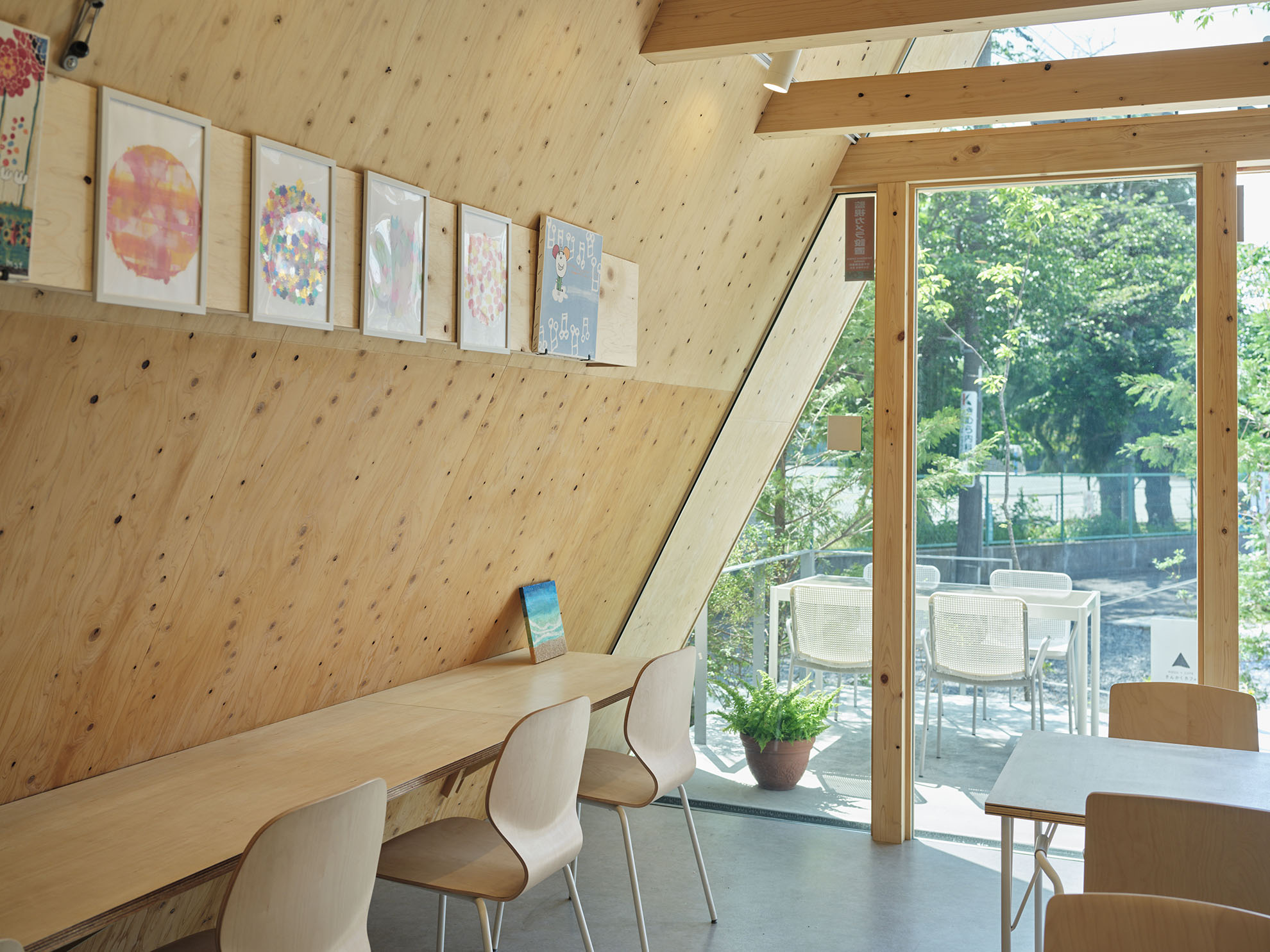 三角屋根が印象的なバリアフリー空間にはスロープや広いトイレを設け、子どもから高齢者までが安心して過ごせます。地域の大人が子どもにソフトクリームを贈る仕組みや、月1回のマルシェ・音楽イベントなどを通じて、日々多くの人が集う風景が生まれています。障がい者事業所の菓子販売や情報発信も行い、地域と福祉をつなぐ拠点として機能しています。