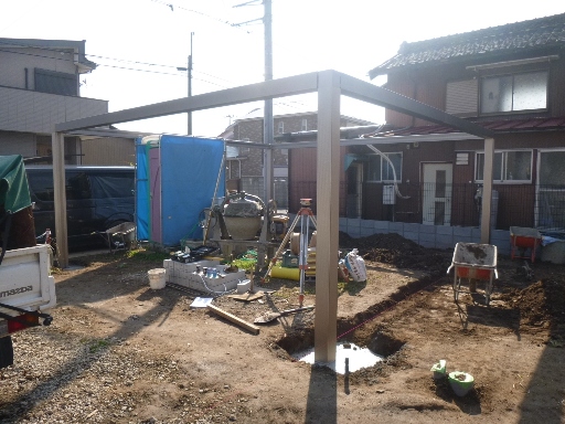 建物の周りでは設備屋さんが配管の埋設工事をしております。