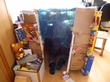 榎戸様は竣工4年目です。幼稚園だった洸太君も4年生、居間の片隅に大きなダンボールハウスを建設していました。