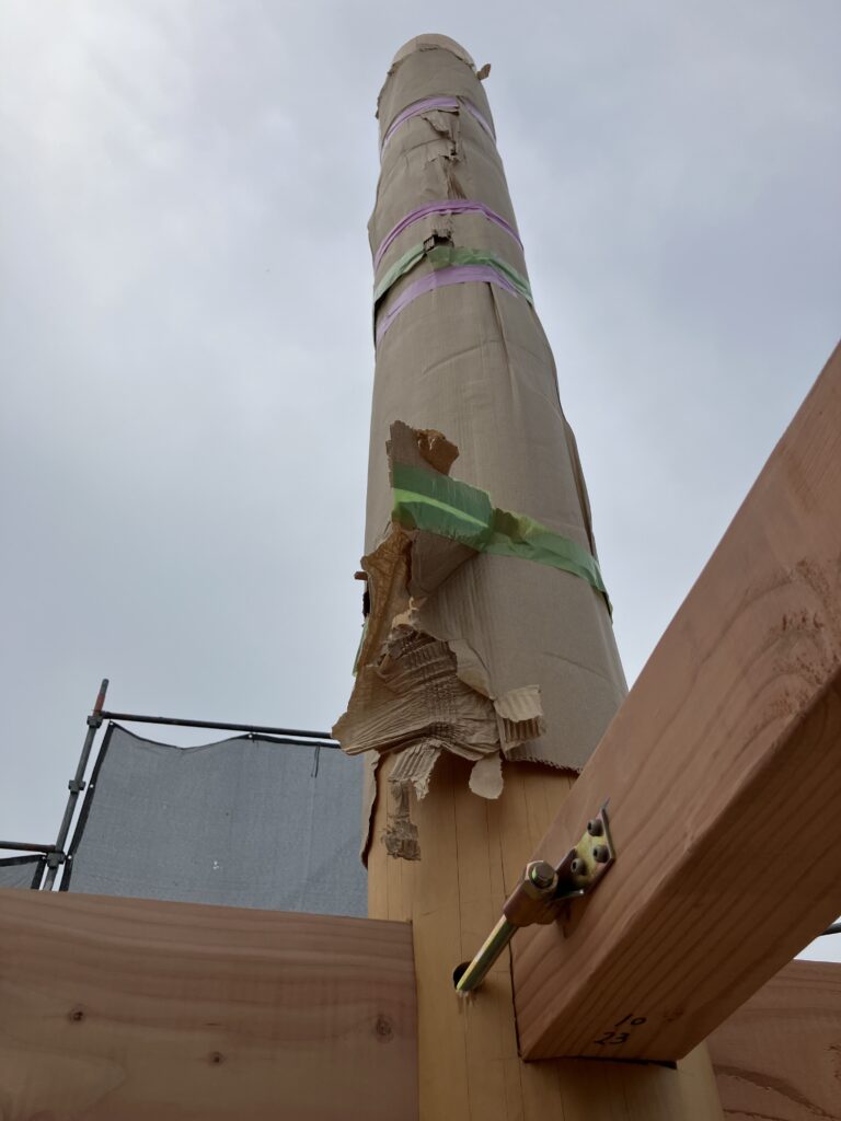 建て主様と一緒に伐採した大黒柱も、いい感じです。
