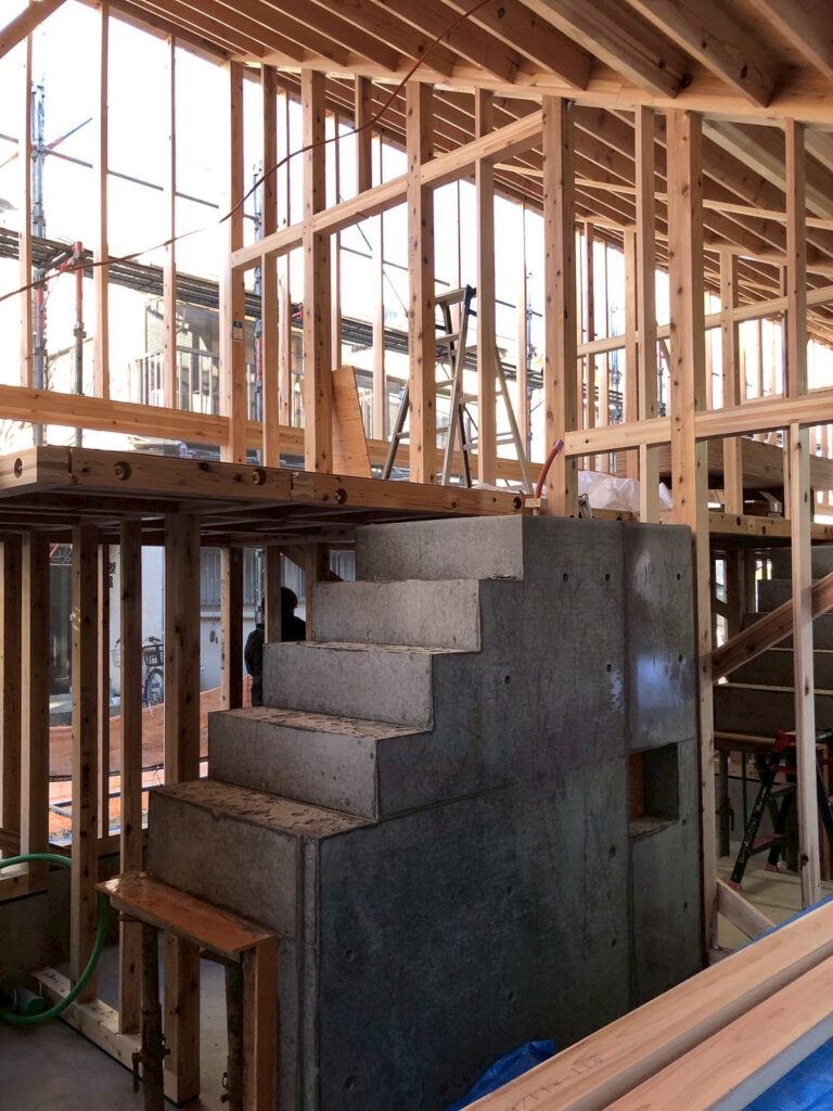 骨組みの状態でも、階段の位置や空間のつながりがなんとなく形になってきました。