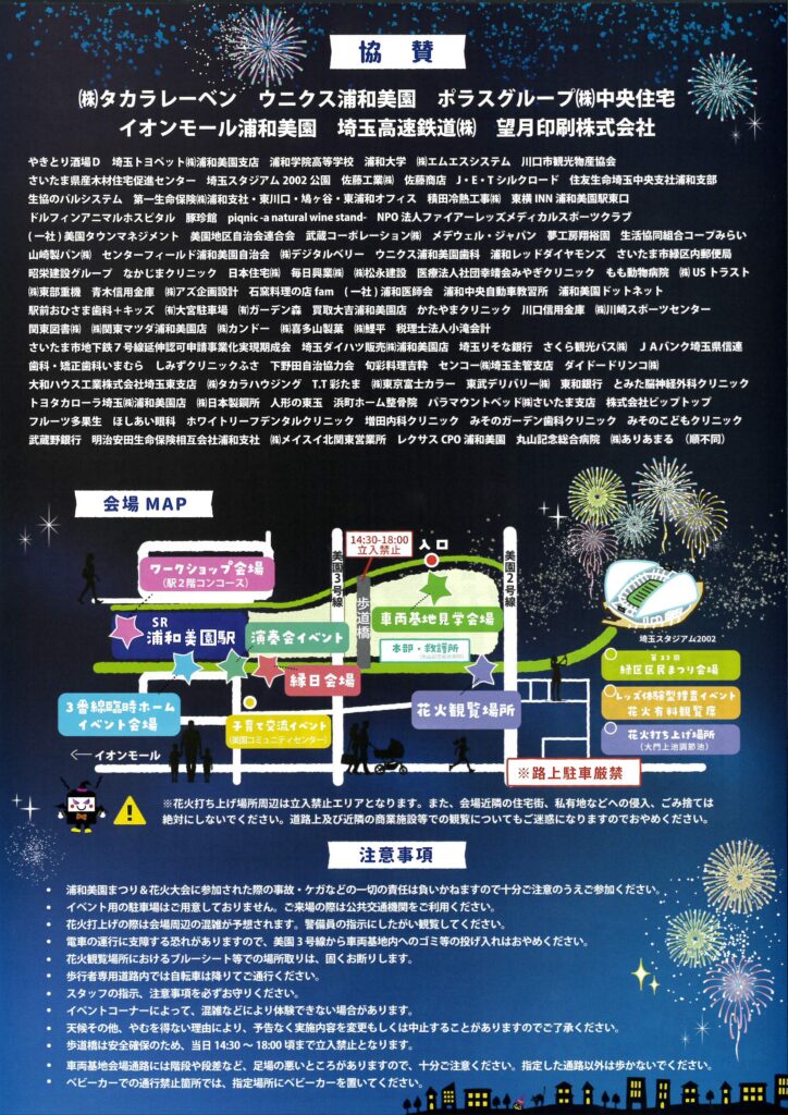 10/19 第11回浦和美園まつり&花火大会 2025.10.9 イベントのご案内 お知らせ 第11回浦和美園まつり&花火大会 2025年10月19日(日)10:00~17:30 開催予定です!(雨天決行) 榊住建も浦和美園モデルハウス前にて、ミニ上棟式(上棟後、餅まき)やDIY教室、アクセサリー教室、丸太切りなどを企画しています!お楽しみに! 記事一覧へ