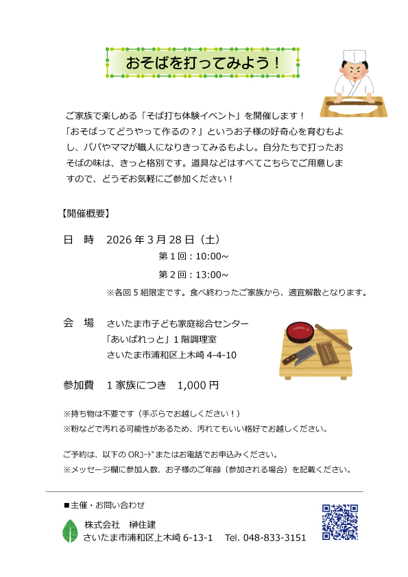 突然ですが、そば打ち教室を開催します!